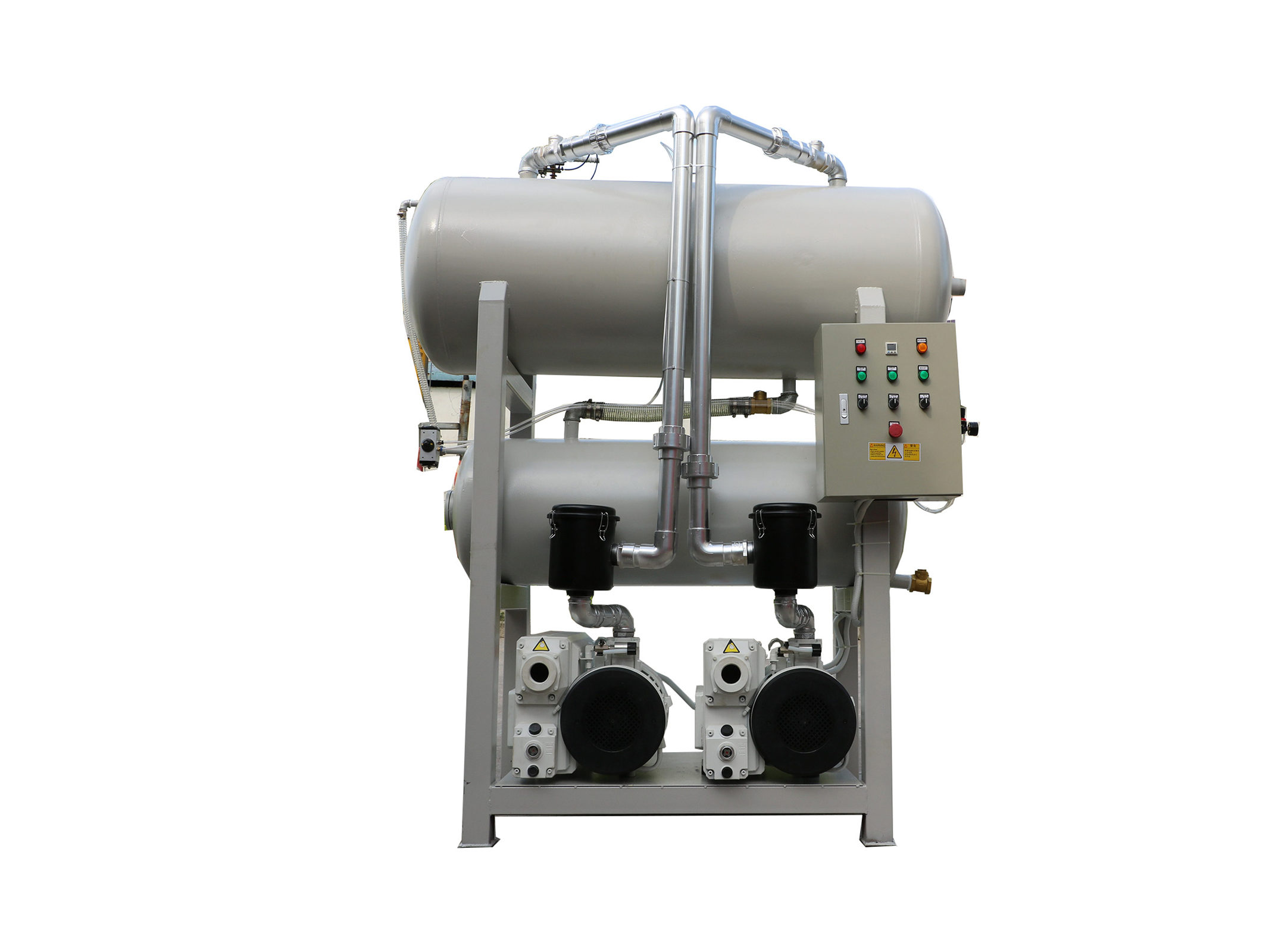 VG202雙泵雙罐臥室真空系統(tǒng)方式一般是根據(jù)客戶使用方法,真空緩沖的安裝方式來(lái)劃分,一般負(fù)壓站的真空緩沖罐超過(guò)0.6立方安裝在固定的設(shè)備房?jī)?nèi),不經(jīng)常移動(dòng)則做成固定式負(fù)壓站緩沖罐小于0.6立方臥式安裝負(fù)壓站需要多工位作業(yè),則做成移動(dòng)式負(fù)壓站。