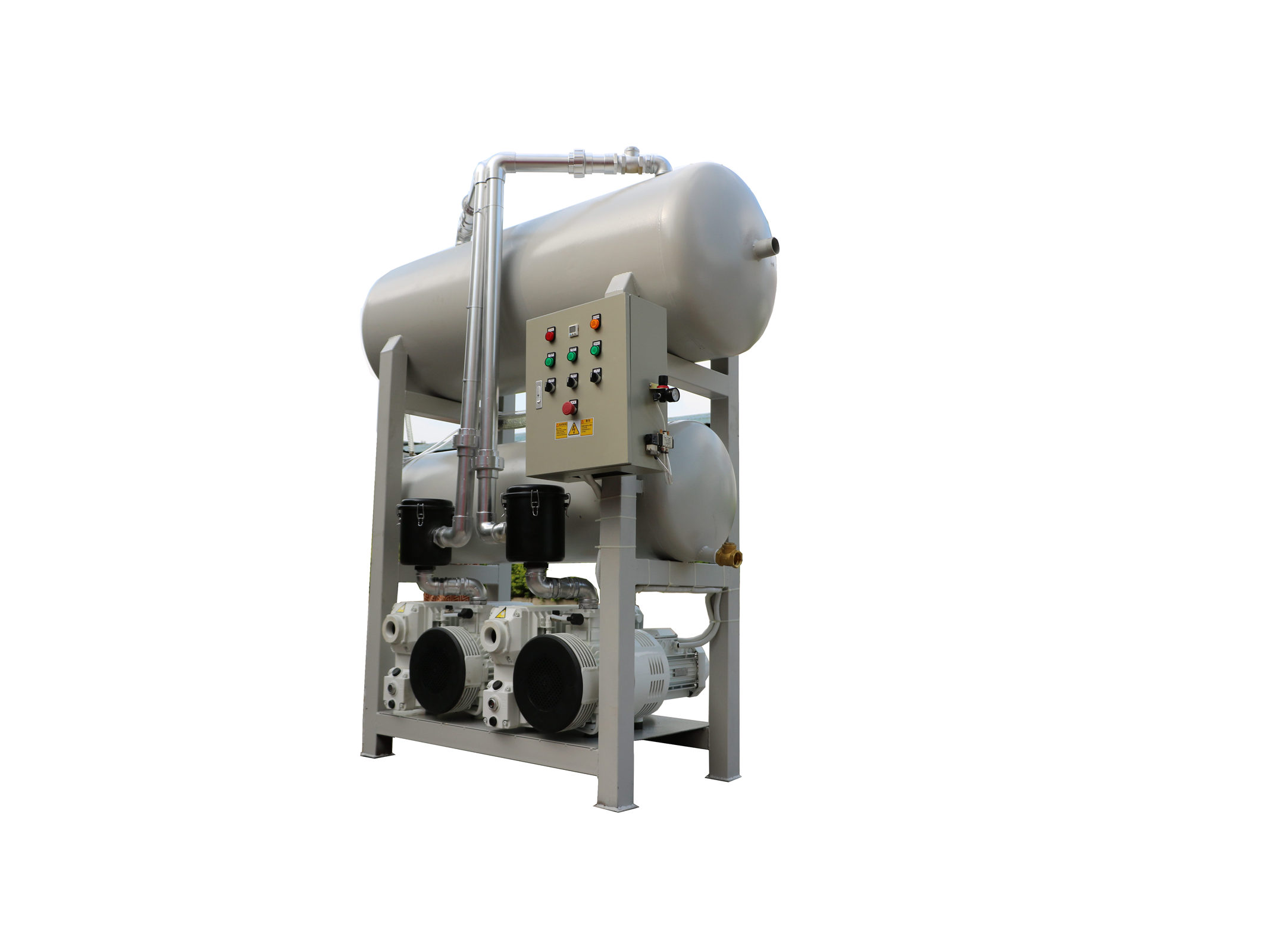 移動(dòng)式真空負(fù)壓站一般包含真空緩沖罐、真空泵、控制制箱、冷卻卻器、真空附件、真空度報(bào)警系統(tǒng);該系列負(fù)壓站包含兩種類型,即開放式真空負(fù)壓站和封閉式真空負(fù)壓站,客戶使用環(huán)境良好,操作簡(jiǎn)單,成本要求嚴(yán)格,則可做開放式真空負(fù)壓站;客戶使用環(huán)境惡劣,有大量粉塵,可凝性氣體,腐蝕性氣體等環(huán)境,則做成封閉式。